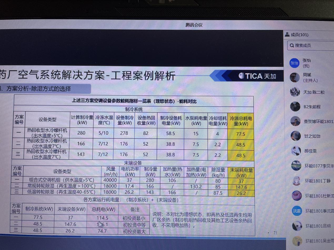 结合多年丰富的产品研发与工程应用经验,陈总通过对电子厂房、药厂、锂电池车间、地铁空间及现阶段抗疫场景的多邻域空气系统解决方案及末端产品选型应用的深刻解读,使同学们对洁净邻域的设计要点学深悟透。更兼工程实例的分享,提醒同学们规避易错点,掌握重难点。在讲座后期,陈总还安排了互动环节,同学们积极与老师交流,赵工也知无不言,言无不尽,线上气氛活跃。