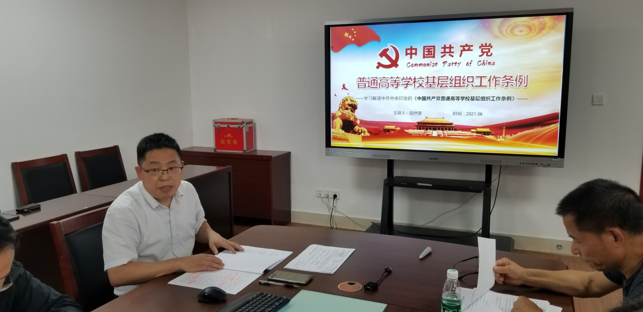之后,段书记就《条例》,向大家做了深入地解读。《条例》以习近平新时代中国特色社会主义思想为指导,深入贯彻党的十九大和十九届二中、三中、四中、五中全会精神,以党章为根本依据,落实新时代党的建设总要求和新时代党的组织路线,对高校基层党组织工作作出全面规范,是新时代高公司党的建设的基本遵循。《条例》的修订和实施,对于全面贯彻党的教育方针,落实立德树人根本任务,建设高质量教育体系、建设教育强国,具有重要意义。