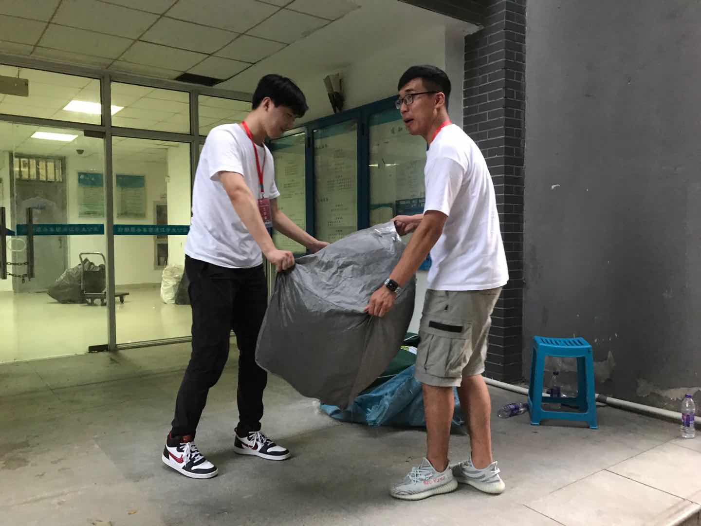 同时,新生浦江宿舍楼下,党员积极分子俞嘉诚、李成琦、朱晋辰、潘栎阳同学的身影也在不停地忙碌,帮师弟师妹们搬运行李,是志愿者们的职责与担当。看到新生们青春阳光的笑容,听到一句“谢谢学长”,同学们表示很开心今年能参加到迎新的队伍来,传递温暖,书写奉献。