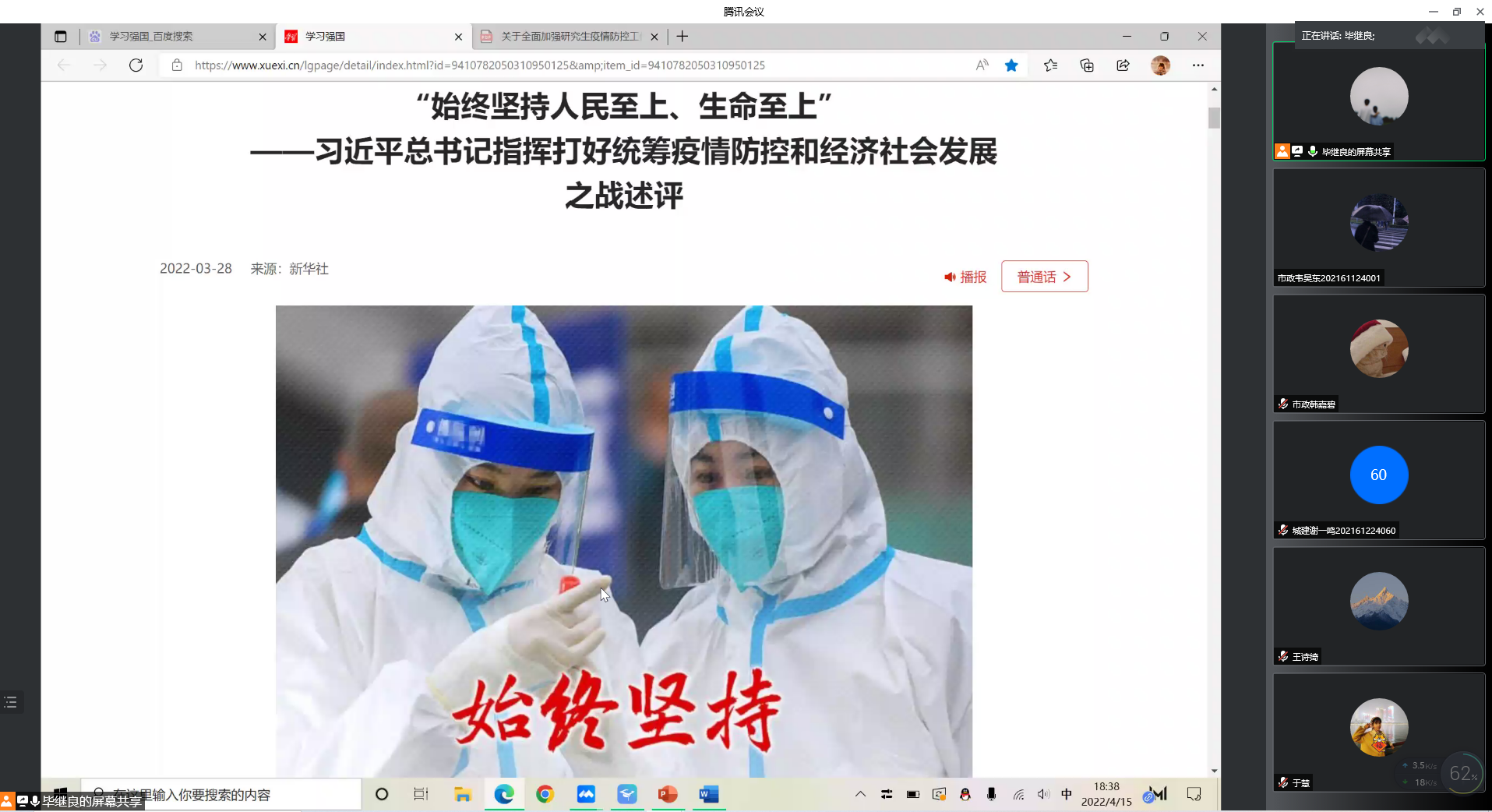 2022年4月15日晚上365英国在线体育市政研究生党支部举行了“抗击疫情,从我做起”倡议活动,倡议党员充分发挥先锋模范作用。本次活动根据公司疫情防控的规定采取线上方式进行,支部全体党员参加了活动。活动由支部书记毕继良主持。