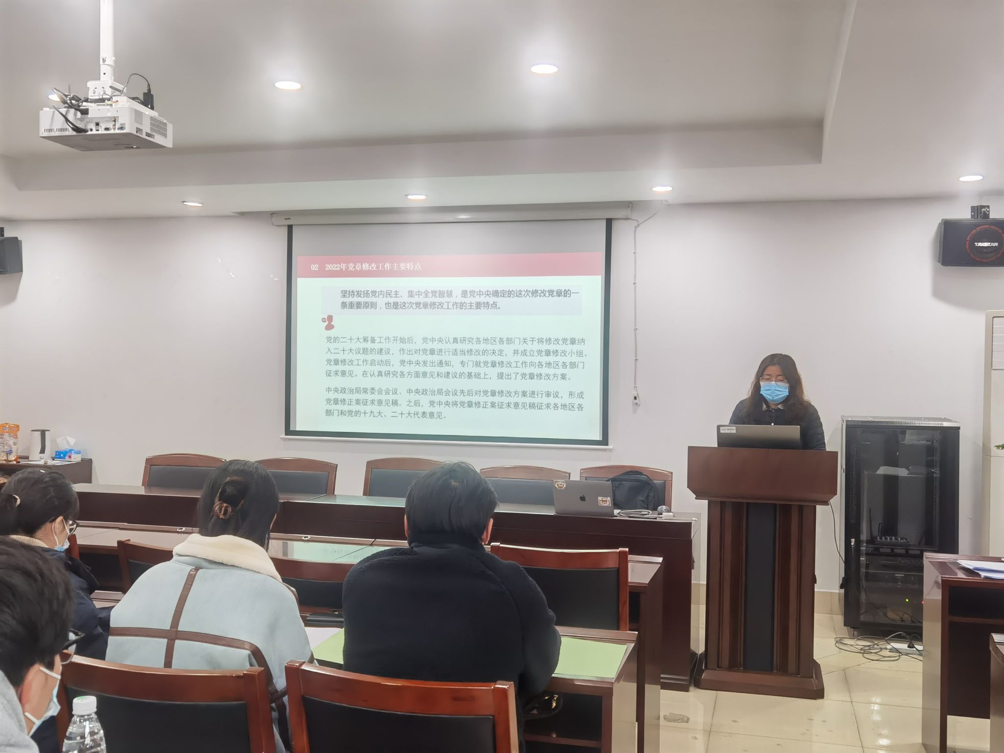 会议伊始,程建杰就党章修改内容,进行了逐一解读,并指出党章的历次修改有利于更好发挥党章的规范与指导作用确保党章与时代同行并进,是我们党的一个惯例,也是我们党的一个优势,切实巩固了党的二十大的重大政治成果。