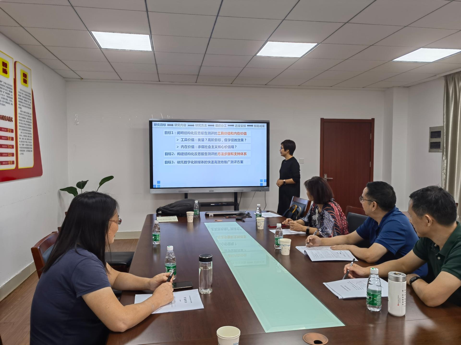 在汇报完成后,专家组对课题给予了细致点评,并针对项目面临的问题提出了建设性意见。一是建议加强学业测评微课程的建设,使团队成员对结构化反思报告的设计理念有深刻理解;二是支持团队所有成员申报校级和院级的教改项目,通过这些教改项目的申报和实施来完成本项目的研究任务;三是对参加教学创新大赛和指导员工比赛的团队成员进行辅导和支持,以比赛对课题研究成果进行检验;四是优化数字化新媒体的运营方法,使研究成果的推广工作快速高效。