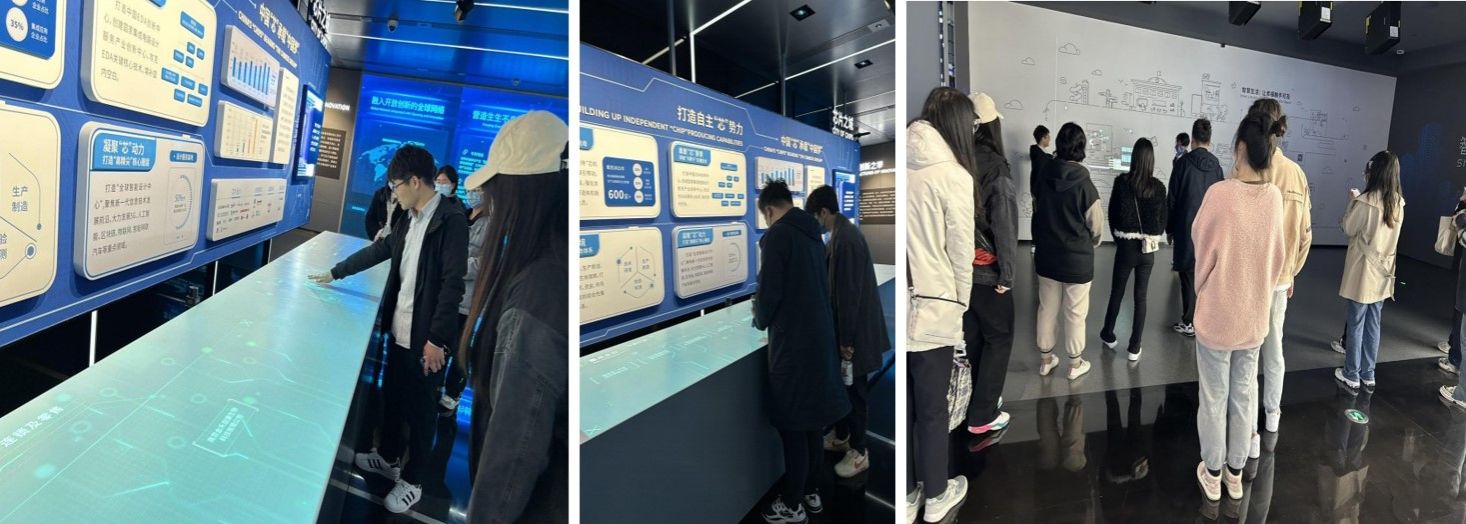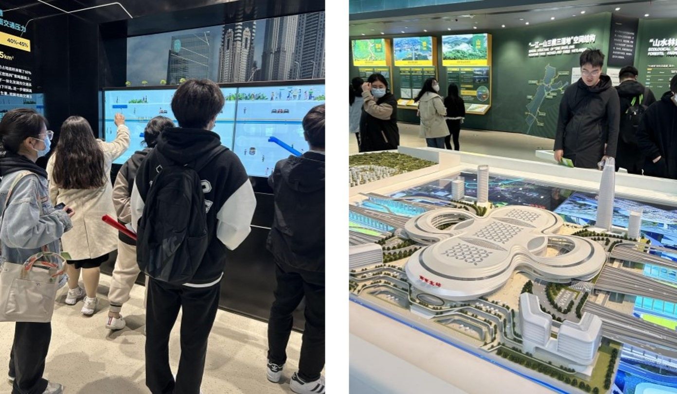 一大早,同学们如约而至,在任课教师孙老师的带领下,同学们井然有序的进入展馆。刚进大厅,映入眼帘的是空间为核心的三折幕,地面、立面、天花三面联动播放——一起走进最近的未来。全方位多角度呈现了新区发展演变和建设成果,生动诠释了江北新区主城的美好蓝图。