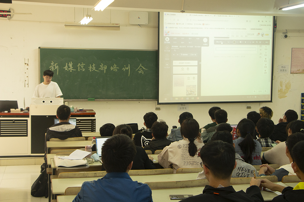 活动伊始,周舟同学向员工会成员详细讲述了365英国在线体育公众号封面制作方法及推送方式,强调了制作过程中的细节和要求,并简单介绍了新闻稿的格式、注意点等;其次,别军营同学通过现场剪辑一个短视频,向同学们介绍了pr软件中常用的功能及使用方法,并初步展示了海报、奖状等的制作,参与活动的同学表示受益匪浅。