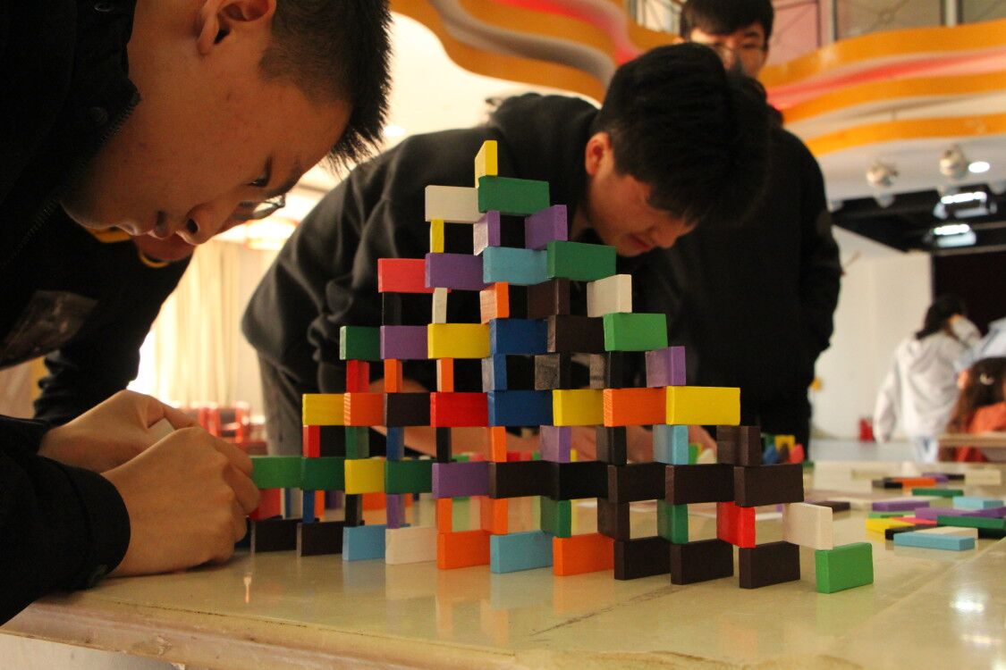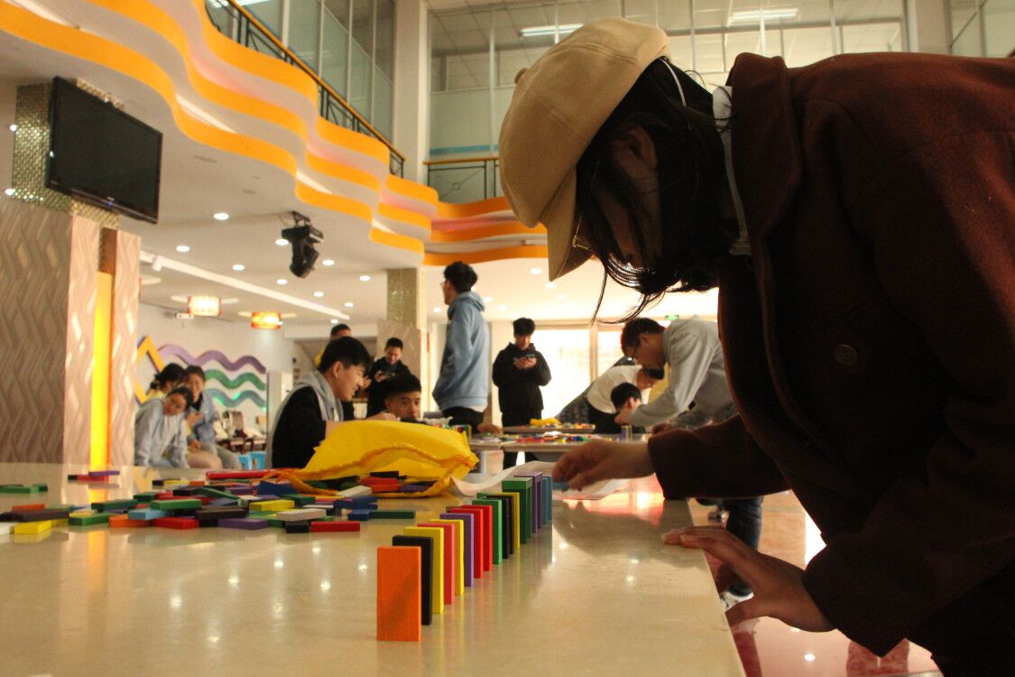活动伊始,主持人为大家介绍了比赛规则与流程,参赛队员们抽签决定比赛次序,之后由工作人员发放图纸,按照图纸摆放三段多米诺骨牌,从完成度、花费时间、难度三个方面评分。比赛过程中,同学们积极参与、全神贯注、相互协作,都较好地完成了任务。紧张激烈的比赛过后,经过计分评选,5支队伍表现优异、突出重围,活动最后,工作人员为他们颁发了奖品,活动取得了圆满结束。