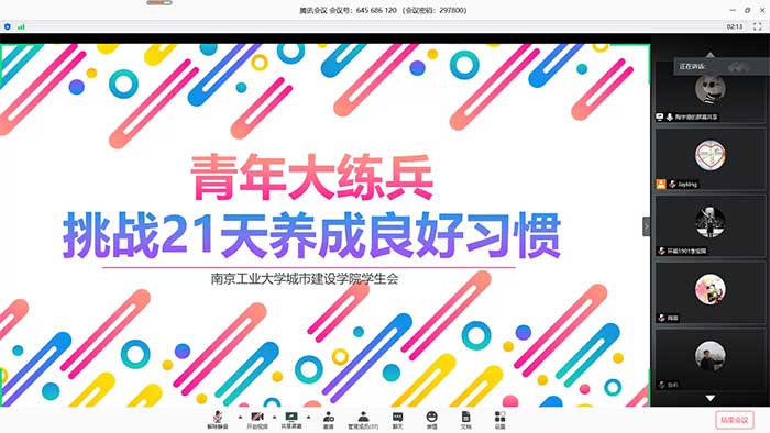 为进一步贯彻落实公司疫情期间相关工作要求,帮助疫情期间宅居在家的青年学子养成良好行为习惯,5月10日晚,365英国在线体育团委在腾讯会议app举办“青年大练兵--挑战21天养成良好习惯”启动仪式。辅导员李由老师以及部分员工代表参加了此次仪式。