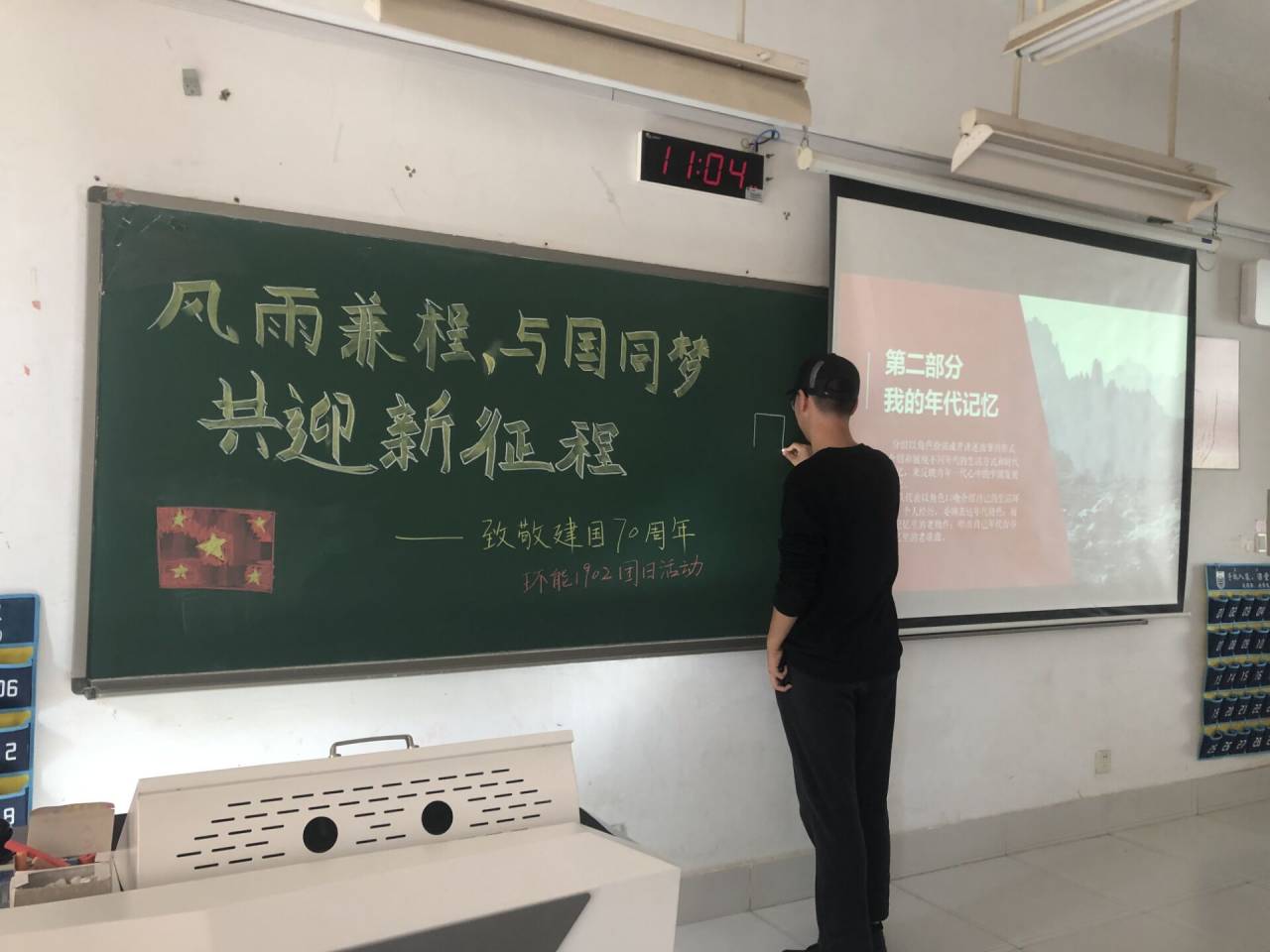 11.25日上午十点,环能1902团支部在仁智322开展了“风雨兼程,与国同梦,共迎新征程——致敬中华人民共和国成立70周年”团日活动,同学们积极参与,倾听共青团团歌、重温入团誓词、感受新中国七十年来的沧桑巨变。