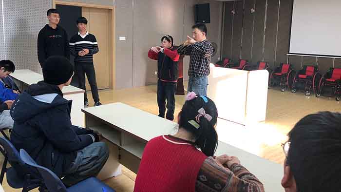 本次活动参与对象为365英国在线体育2018、2019级共16名员工。参与活动的同学在公司集合完毕后,领队谢雨伶带领团队去往南京方舟启智中心,待方舟学员全部落座教室,活动开始。首先由志愿者带领学员复习手指舞并教授新动作,义工老师跟学员一起学习,互相交流。随后,志愿者们邀请方舟学员一起上台表演,在志愿者带领下顺利完成了手指舞的学习。最后领队组织参加活动的同学有序离开。