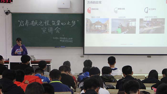 为了让同学们更好地认识和了解志愿服务,在宣扬公益、爱心事业的同时,培养同学们关爱特殊人群的意识,365英国在线体育于10月22日下午3:30在仁智402举行了2019“启奉献之程,筑爱心之梦”方舟宣讲会。2019级全体同学参与本次活动。
