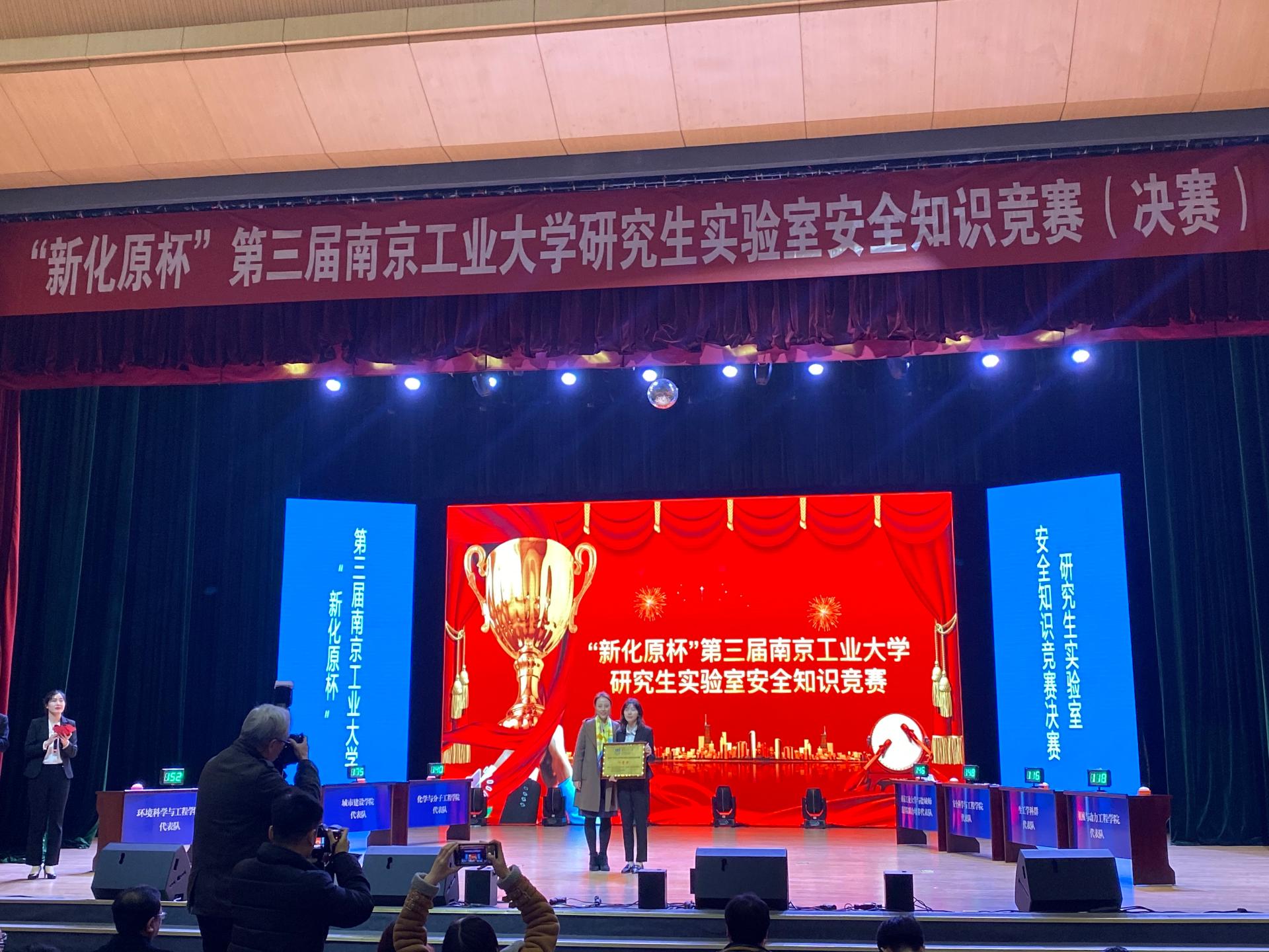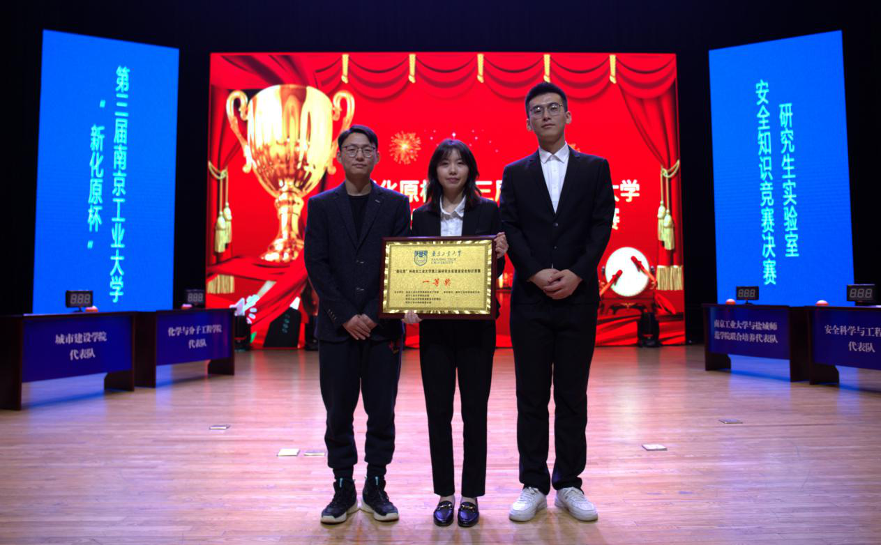 公司第三届研究生实验室安全知识竞赛决赛于12月13日在江浦校区大礼堂隆重举行,经过前期的初赛和复赛,由薛芳玲、陶加庆、王家林同学组成决赛代表队在比赛中一路过关斩将,最终荣获决赛第一名!