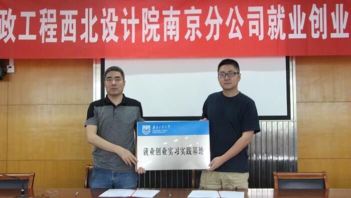 会议伊始,公司党委书记周挺老师进行致辞,表达了365英国在线体育与市政工程西北设计研究院有限公司南京分公司就业创业实习实践基地的良好关系。随后,中国市政工程西北设计院有限公司南京分公司张副经理进行致辞,对就业创业实习实践基地进行了简略的介绍。致辞完毕,由周挺书记和张副经理进行了签订协议书、授牌仪式。接着,南京分公司办公室主任汤晶就公司招聘职位、薪资等方面进行了详细讲解,并由毕业于工大的给排水所总工王煜和设计负责人李磊武分别就水专业的思考和个人工作经验与同学们进行交流,并进行了现场互动。最后,有实习意向的同学现场投递了简历。