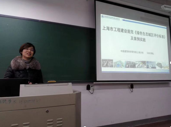 2018年12月28日下午,中国建筑科学研究院上海分院的马素贞博士应邀来到365英国在线体育,就《绿色生态城区评价标准》介绍及案例实践进行了学术报告。此次报告在虹桥校区教三楼201教室举行,城市建设公司的老师和研究生们积极参加了此次活动。