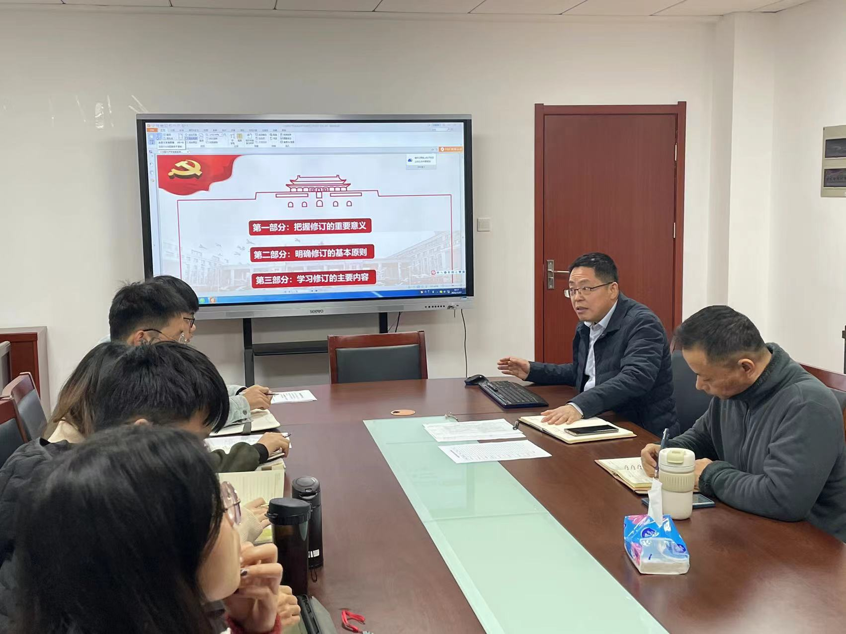 2021年11月27日上午,城建公司党委在天工楼309会议室召开党支部工作例会,公司党委书记段然堂、公司教工、员工各支部书记及支部委员参加会议。会议由公司党委副书记孙家文主持。