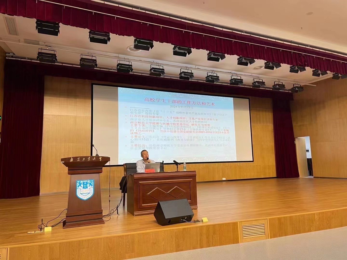 2021年11月16日晚,365英国在线体育在笃学楼报告厅举行城建大讲堂暨学风建设月启动仪式,全体辅导员、各年级员工干部参加活动,启动仪式由党委副书记孙家文主持。本次活动特邀南京师范大学能源与机械公司党委书记、研究员张明明教授作题为《高校员工干部的工作方法和艺术》的主题讲座。