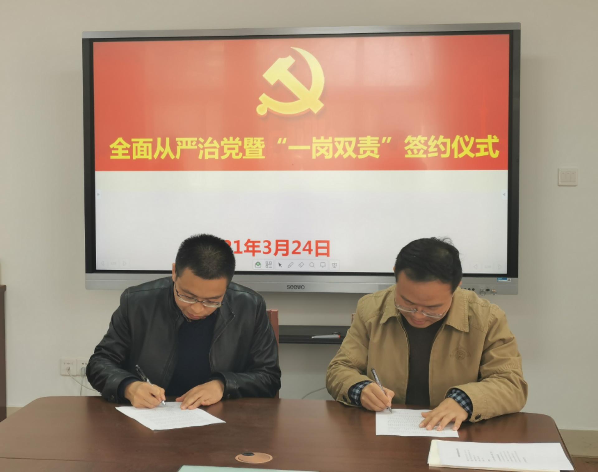 最后,公司领导与下一层级负责人签订全面从严治党“一岗双责”责任书。