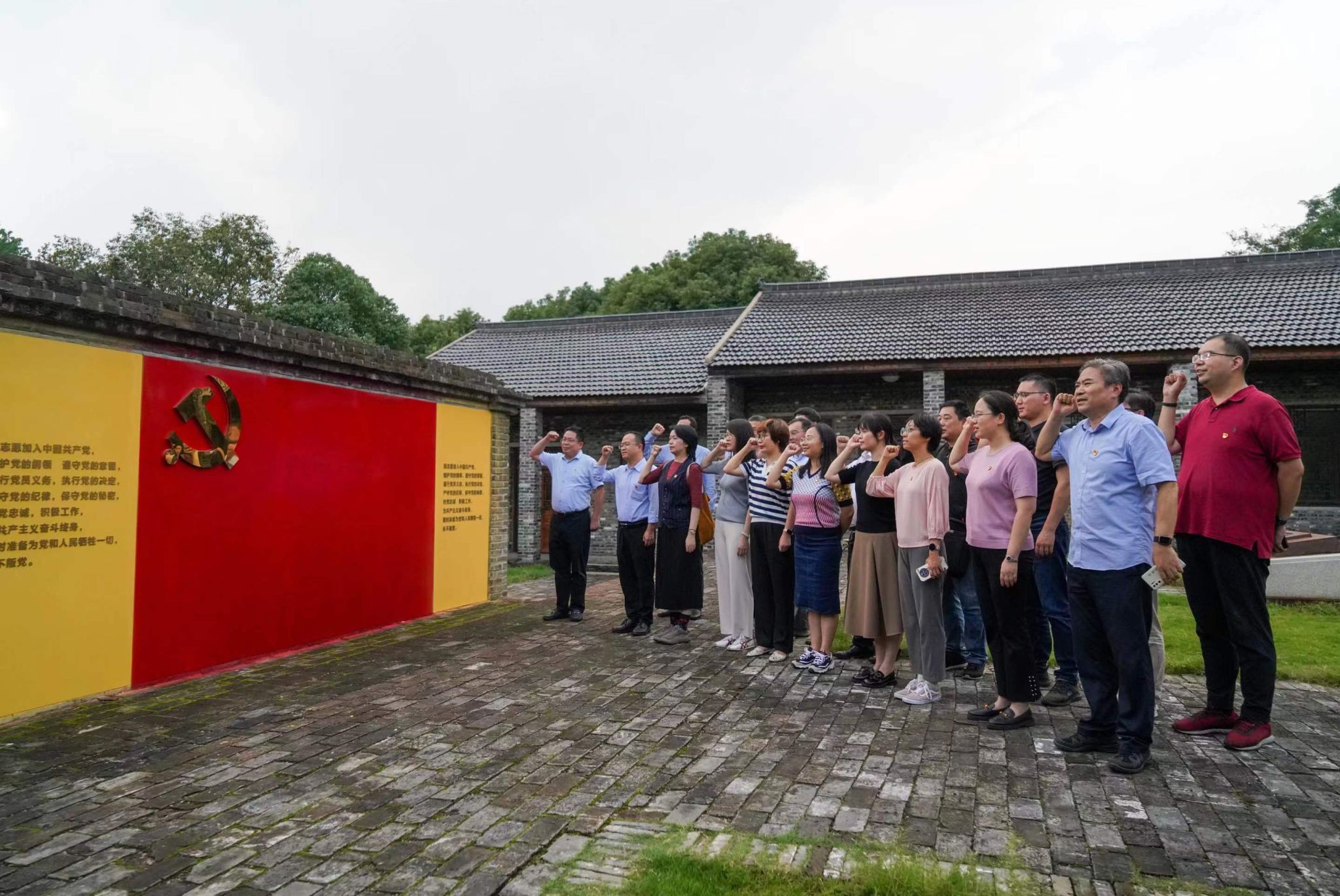在三浦战役史料陈列室,原浦口三中董事长陶道钧介绍了“三浦战役”发生的历史背景、发展过程及革命先烈和前辈们为此做出的牺牲和奋斗,让党员干部沉浸式体验到革命先烈忠诚报国的理想信念和无私奉献的道德情操。在史料陈列室外,全体人员面向党旗再次宣誓,重温入党时对党和人民作出的庄严承诺。