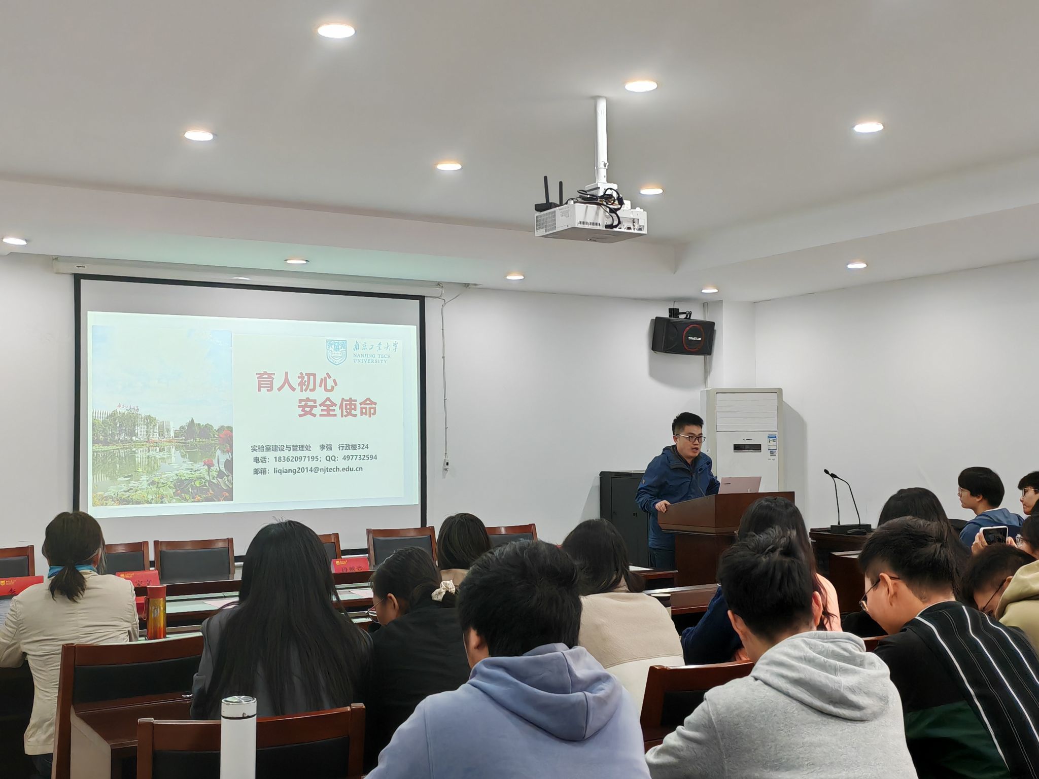 活动由四部分组成,首先段然堂书记和颜承初经理就消防安全的重要性和全院安全工作进行强调和部署,要求全院师生时刻不能放松,要把安全工作放在第一位。第二部分由校实验室建设与管理处李强科长就实验室安全方面做了《育人初心 安全使命》的报告,报告精准分析了公司实验室普遍存在的安全问题,提醒全院师生在工作学习中务必要注意安全工作的细节。第三部分由南京安民消防王有斌教员就消防知识进行宣讲,主要讲述了火灾引发的主要原因,如何消除火灾隐患,遇到火灾如何应急自救等。第四部分由公司领导带领各系(所)、实验室负责人等对全院实验室、办公区域进行安全隐患自查,对出现的问题进行了记录并责令负责人进行整改。