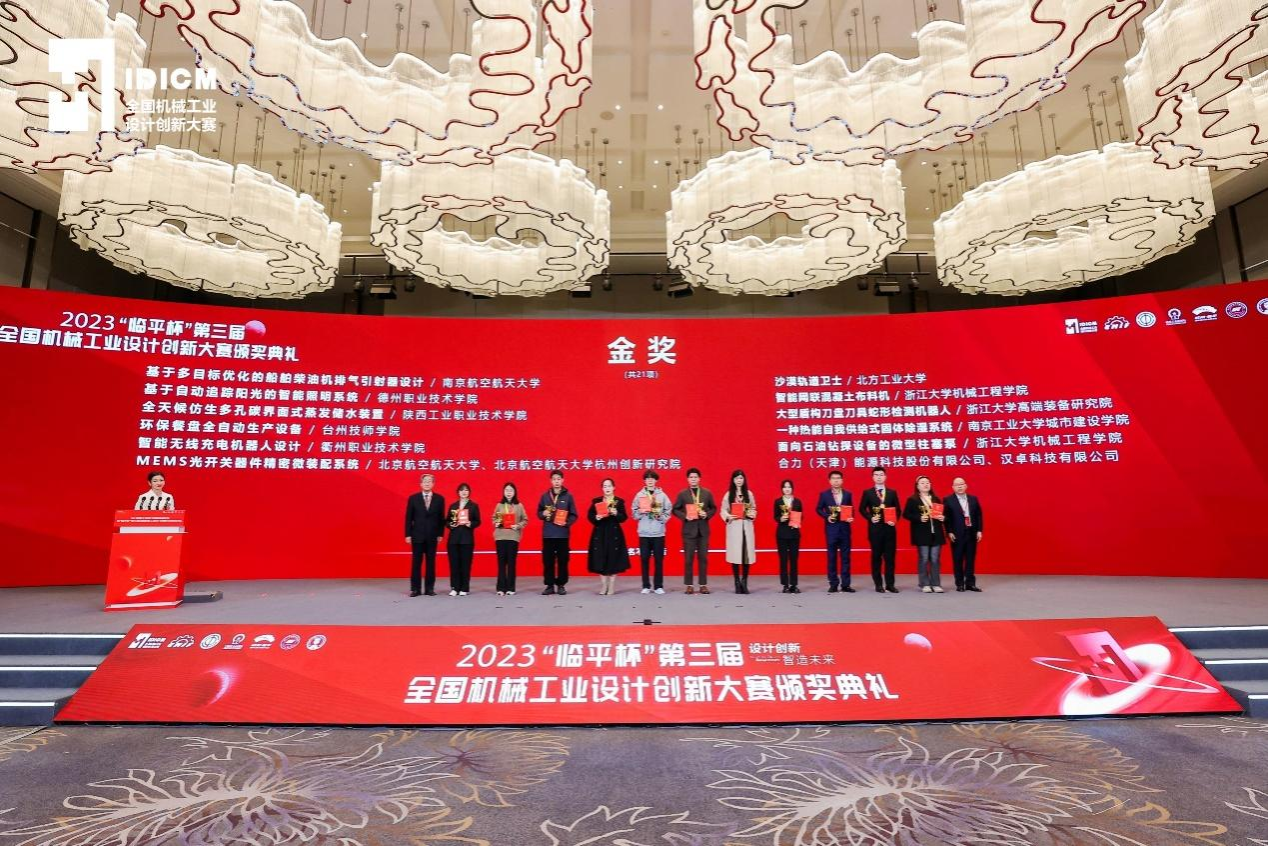 12月8-10日,由中国机械工业联合会、中国机械冶金建材工会联合主办,浙江大学高端装备研究院等承办的2023“临平杯”第三届全国机械工业设计创新大赛决赛在浙江省杭州市举行。大赛共收到来自全国机械行业企业、科研院所、高等院校及职业院校近200家单位的500余件作品,经过激烈角逐,最终产生金奖作品21项,银奖作品40项,铜奖作品60项。