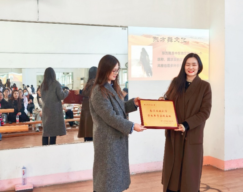 活动伊始,校级美育实践基地建设项目负责人刘翠云老师宣布与雪七东方舞共同合作成立“员工美育实践基地”。随后,张老师向在场的师生们深入讲授了东方舞文化的起源、发展历史,并现场教授东方舞的站姿和基本功。张老师通过生动的讲解和示范,让师生们感受到了东方舞的韵律美感和舞者的情感表达,了解了东方舞背后所蕴含的文化内涵和美学价值。