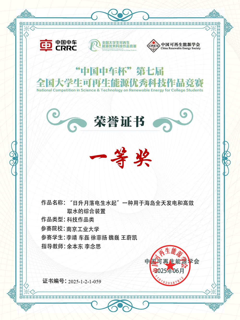 近日,第七届全国老员工可再生能源优秀科技作品竞赛落下帷幕。经过网络评审、现场专家委员会管等环节,我院余本东教授指导的员工作品《“日升月落,电生水起”,一种用于海岛全天发电和高效取水的综合装置》(参赛员工:李靖、徐菲扬、魏巍、王蔚凯、车磊)、《“醛散清馨 电盈绿能”,一种基于光催化界面能量回收的发电和空气净化屋顶》(参赛员工:魏巍、吴华波、张国宇、王蔚凯、曹旭慧、杨成文)分别荣获研究生组一等奖和三等奖。这是公司继第五届之后第二次获得研究生组一等奖。