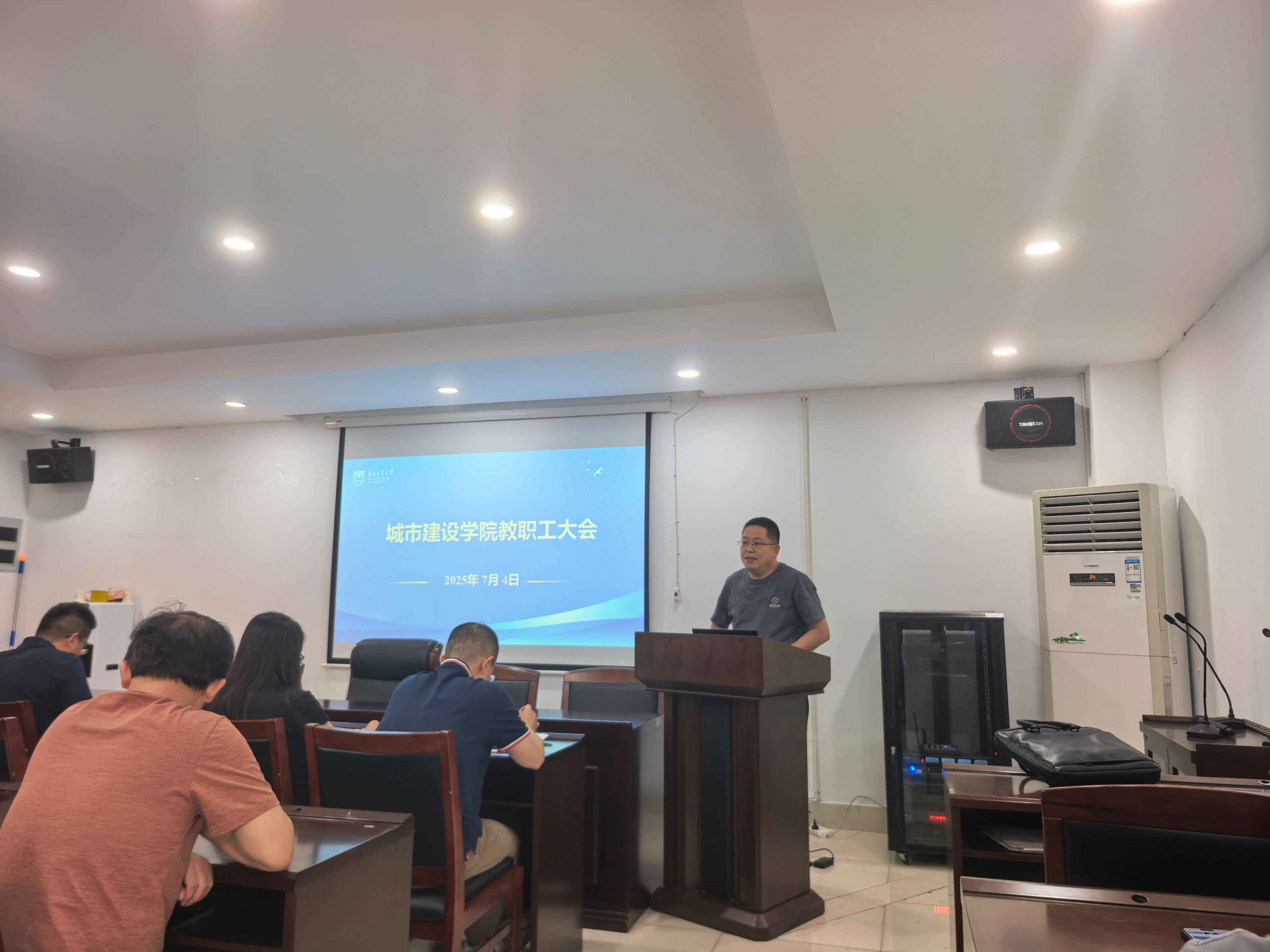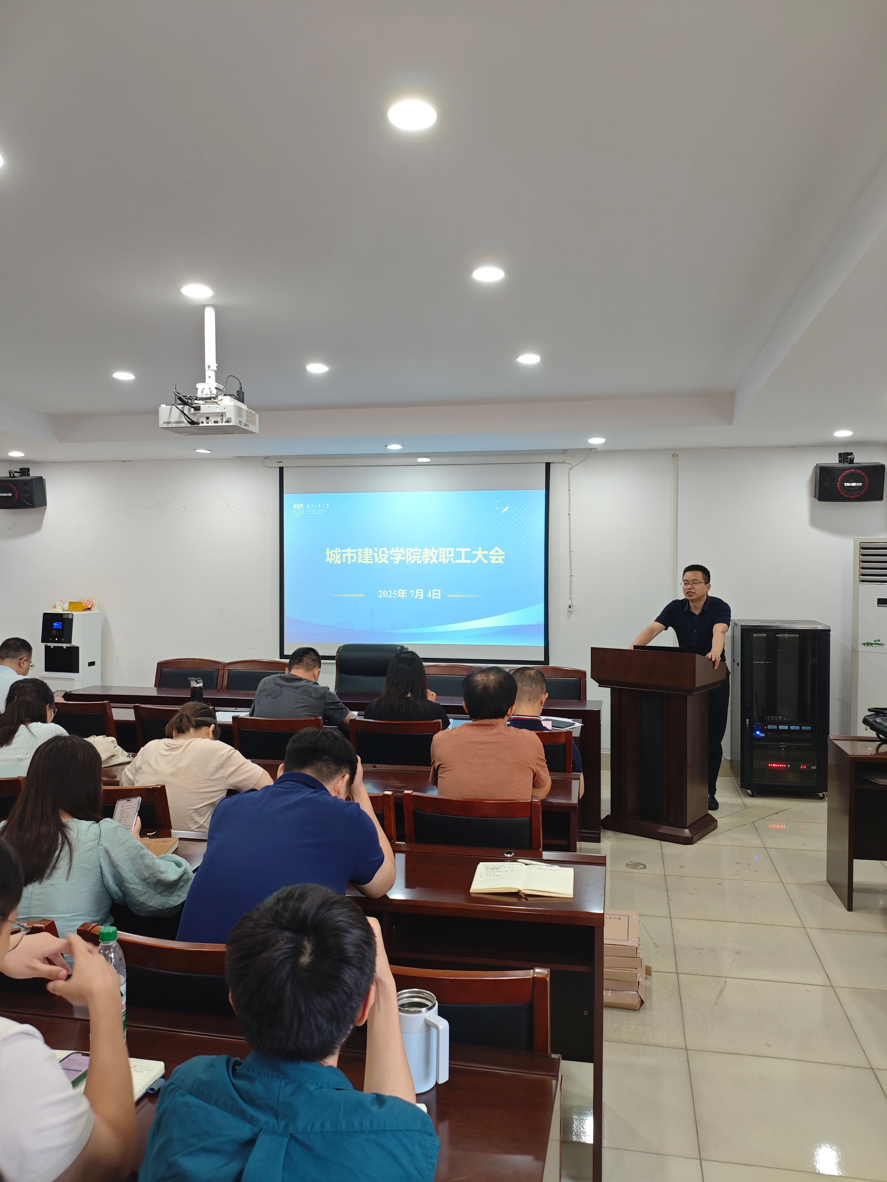 7月4日,全院教职工大会在天工楼302A会议室举行。公司全体教职工参加了会议,会议由副书记孙家文主持。