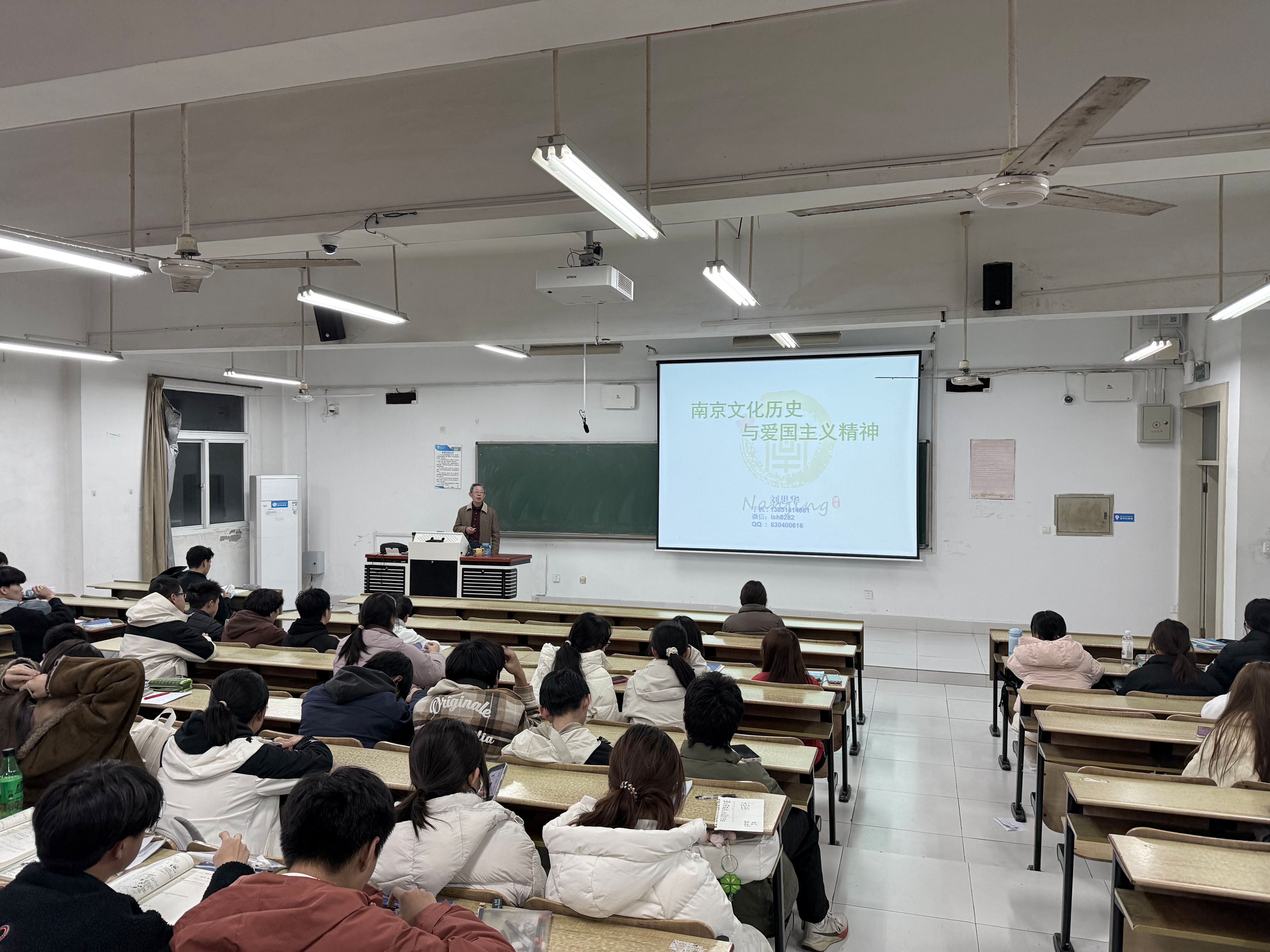 为进一步弘扬爱国主义精神,教育引导新生了解南京深厚底蕴文化,公司于11月20日举行“南京文化历史与爱国主义精神”专题讲座。校关工委成员刘思华老师担任主讲。2025级全体本科生参加讲座。