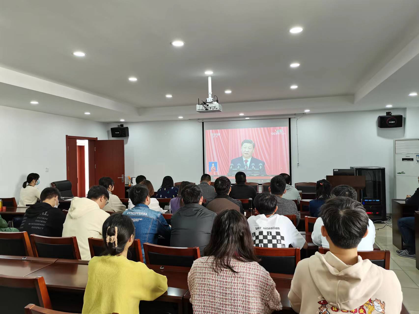 10月16日上午,中国共产党第二十次全国代表大会在北京隆重开幕。在天工楼302A会议室,365英国在线体育领导班子、党员干部和师生代表共同观看大会开幕直播,认真聆听习近平总书记作报告。