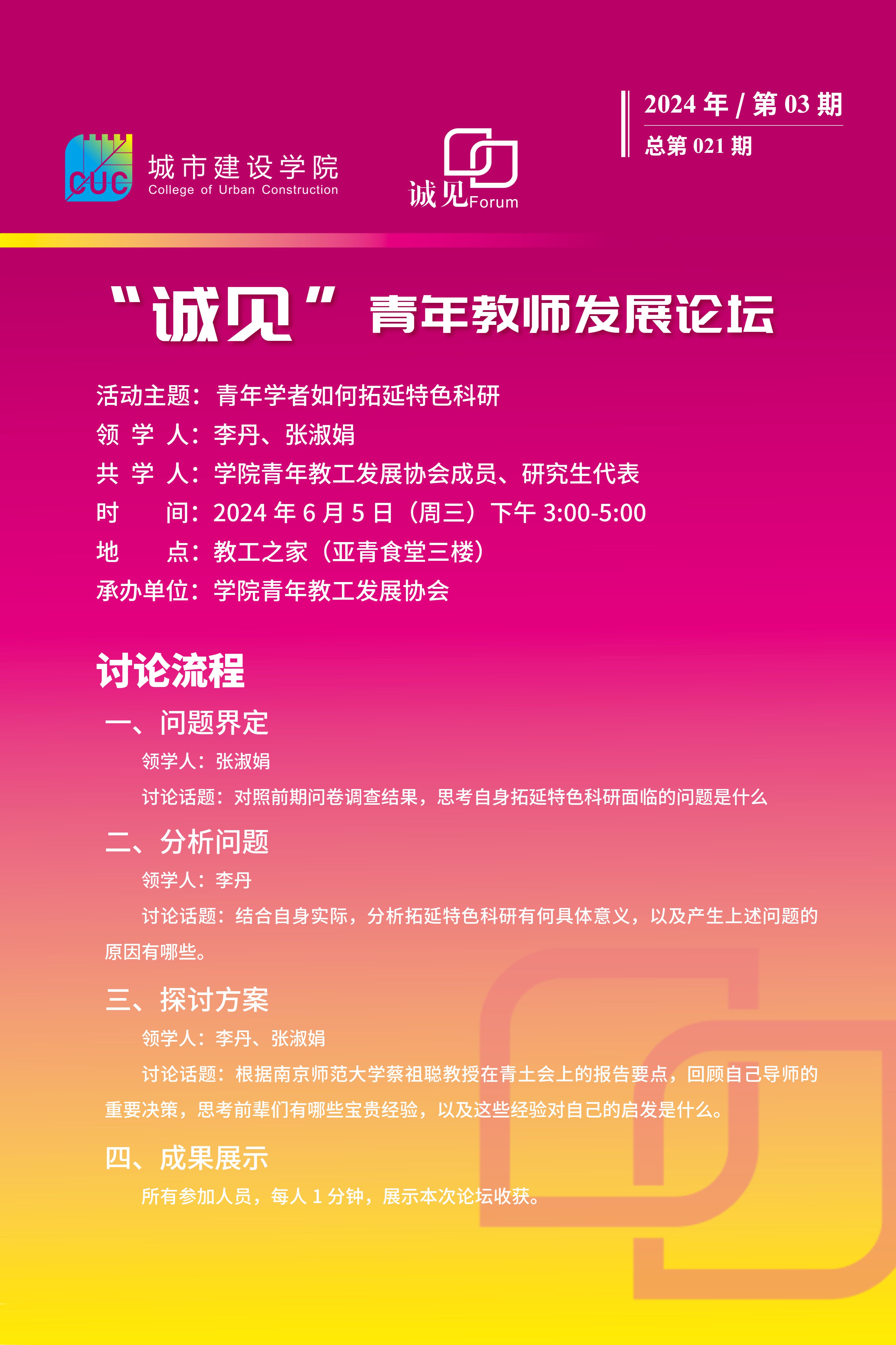 (总第021期)“诚见”明德讲堂-青年教师发展讲坛(2024年第03期)- 青年学者如何拓延特色科研